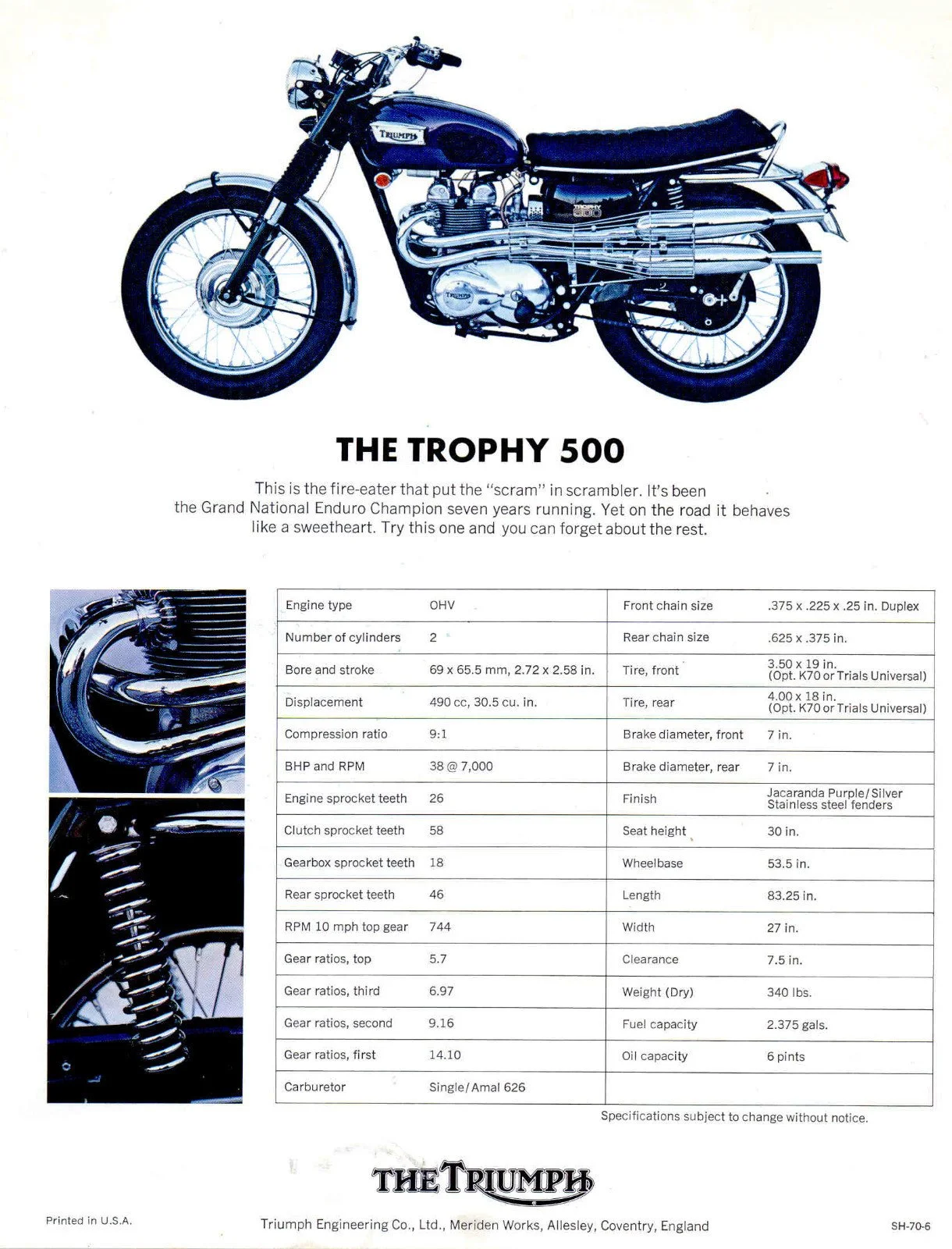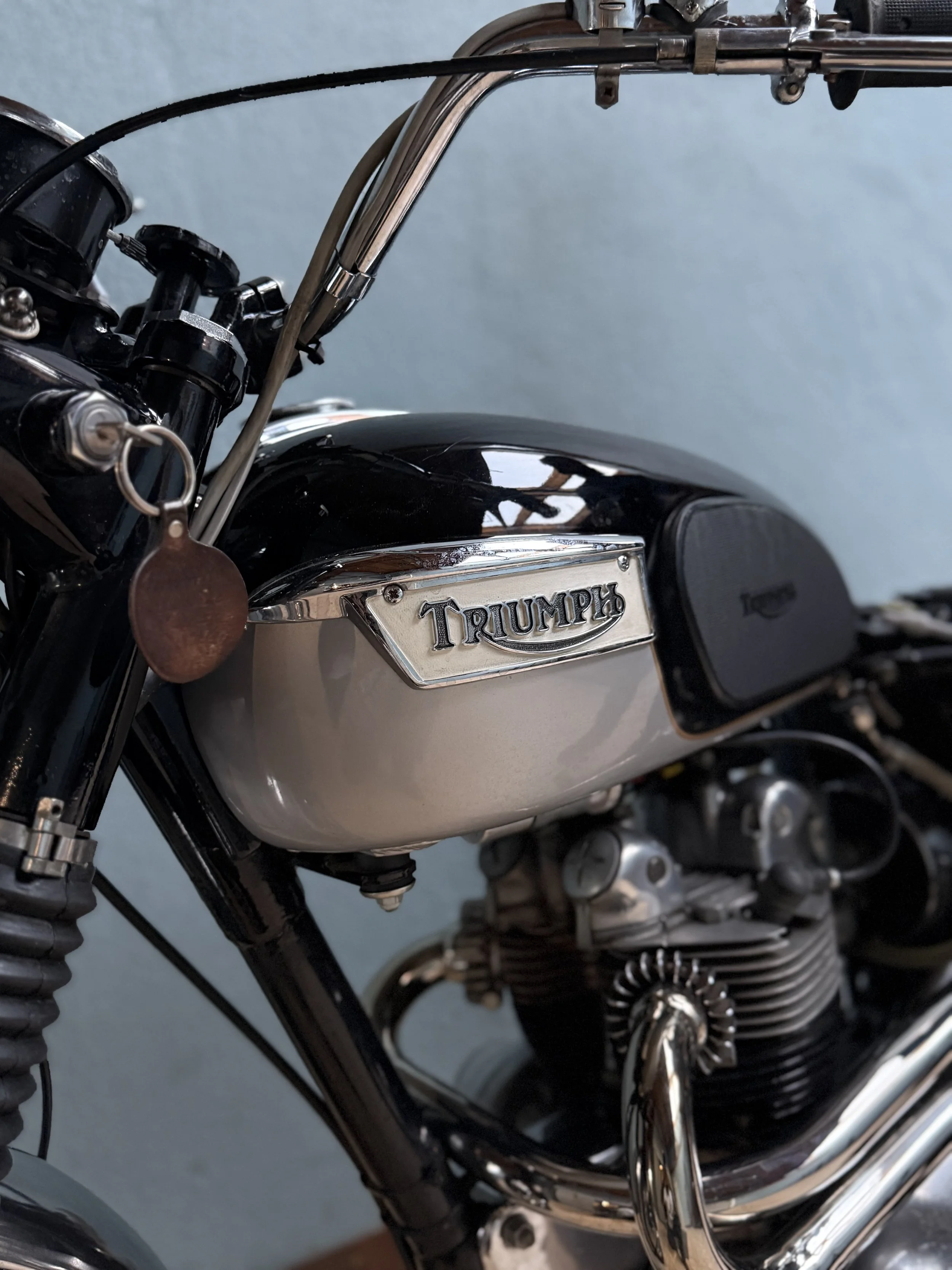 The Triumph T100C had progressively improved over recent years to include a two-way damped front fork, Lucas 6CA contact breakers, and 12-volt coil ignition. Since 1968, the T100C had used the cylinder head that proceeded from the successful effort to unseat Harley-Davidson in the 1966 Daytona 200. This head had a narrower 78-degree included valve angle and larger intake valve for a small, efficient combustion chamber. A ventilated 7-inch twin-leading-shoe front brake had been incorporated in 1969.